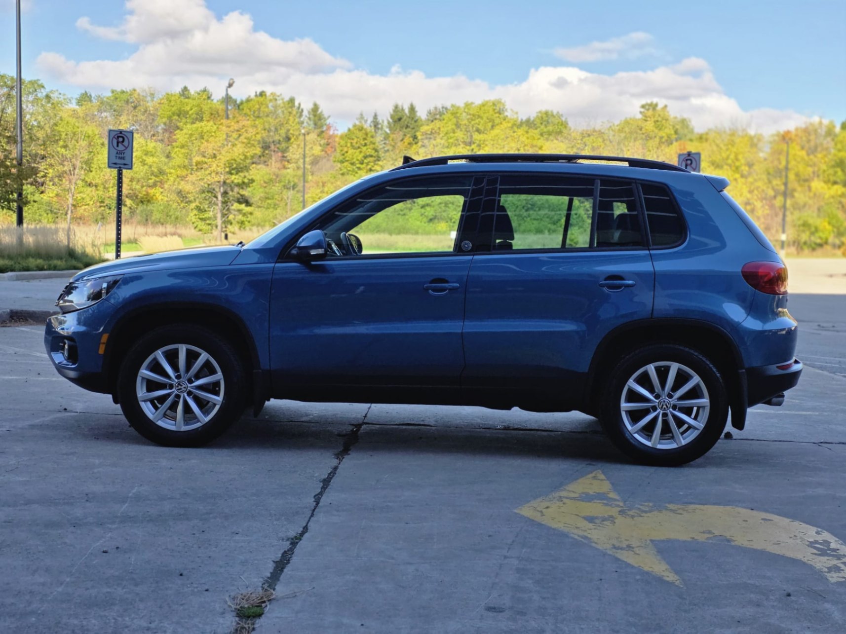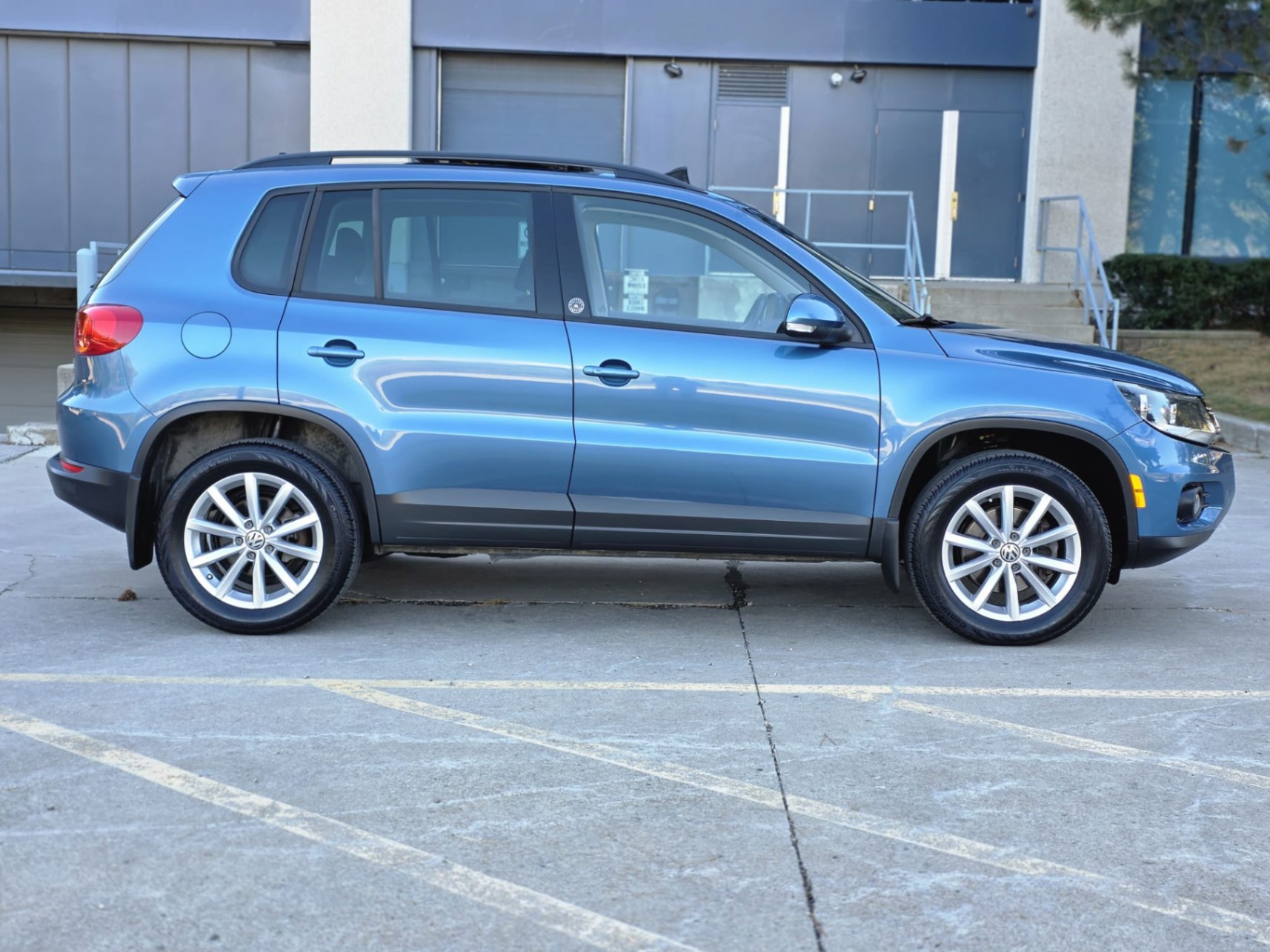 This One Owner 2017 Volkswagen Tiguan Wolfsburg Edition 4MOTION is a stylish and versatile compact SUV with excellent ownership history. An Ontario vehicle with an accident-free Carfax, it has 94,772 km and has been well maintained. Finished in a bold Blue exterior with a sleek Black interior, it combines practicality with European refinement.